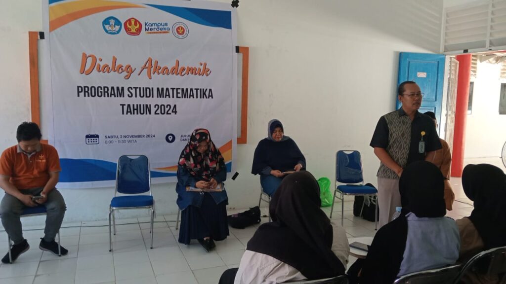(2/11/2024) Prodi Matematika Universitas Tadulako menggelar Dialog Akademik pada Sabtu, 2 November 2024. Kegiatan yang dimulai pukul 08.00 hingga 11.30 WITA ini dibuka oleh Ketua Jurusan Matematika, Prof. Dr. I Wayan Sudarsana, M.Si. dan dihadiri oleh seluruh dosen serta mahasiswa/i aktif angkatan 2019 hingga 2024.