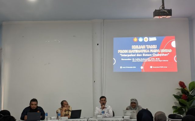 Palu, Jumat, 15 November 2024 – Program Studi Matematika FMIPA Universitas Tadulako sukses menyelenggarakan Kuliah Tamu dengan tema “Interpolasi dan Sistem Chebyshev”. Acara ini menghadirkan narasumber istimewa, Dr. Lukita Ambarwati, S.Pd, M.Si dari Universitas Negeri Jakarta.